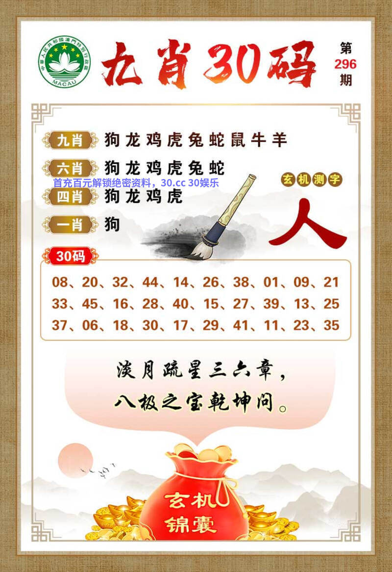 296期:⑨肖【鼠龙马虎蛇猪狗兔羊】开:猴22