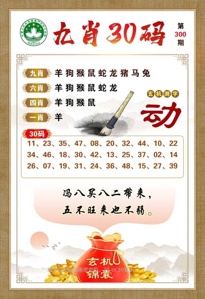 | 300期:九肖 | 猴狗鼠兔虎鸡羊牛龙 | 開:虎40 |